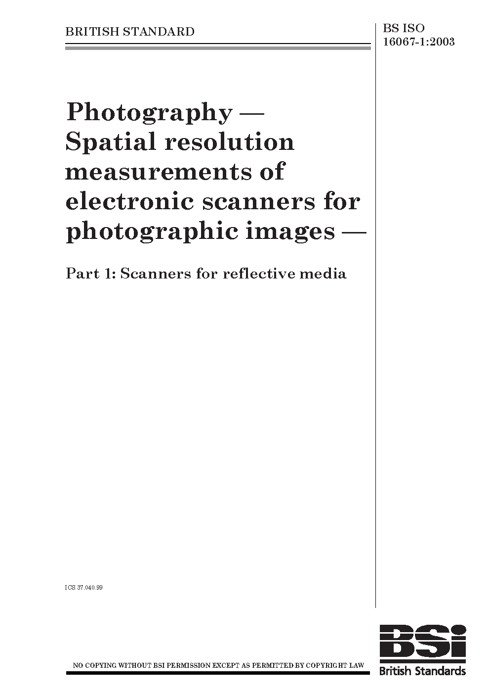Photography. Spatial resolution measurements for electronic scanners photographic images Scanners reflective media