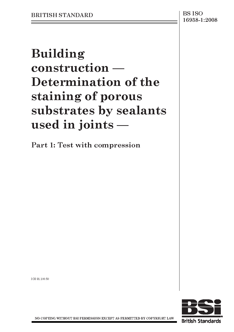 Building construction. Determination of the staining porous substrates by sealants used in joints Test with compression