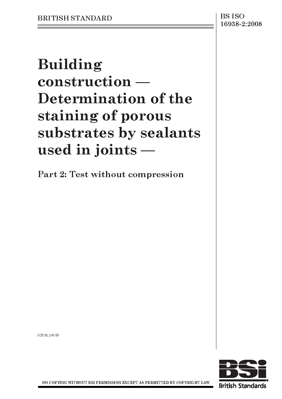 Building construction. Determination of the staining porous substrates by sealants used in joints Test without compression