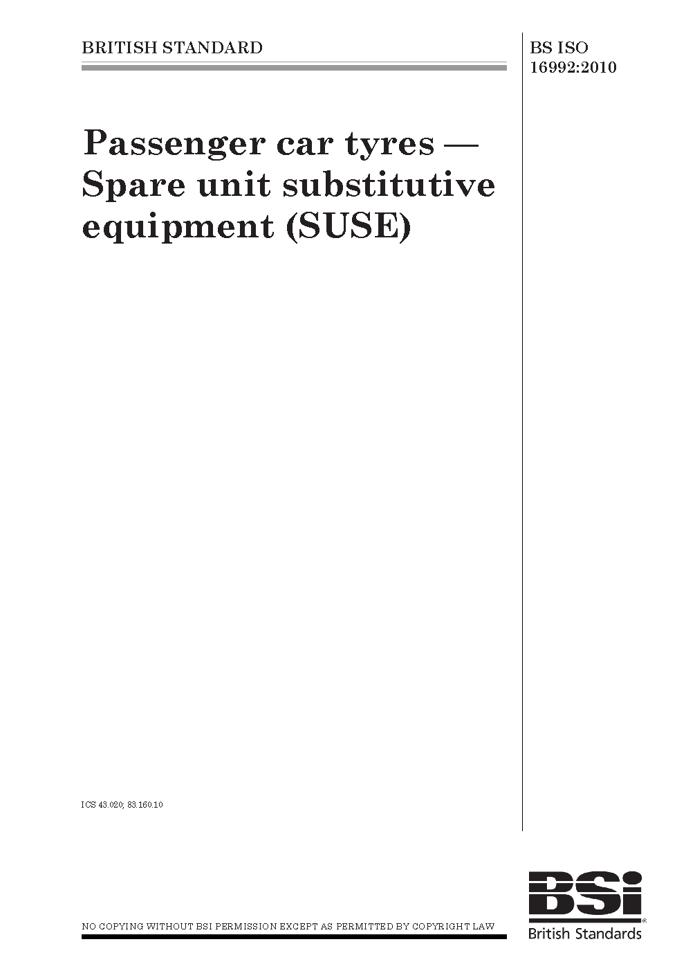 Passenger car tyres. Spare unit substitutive equipment (SUSE)