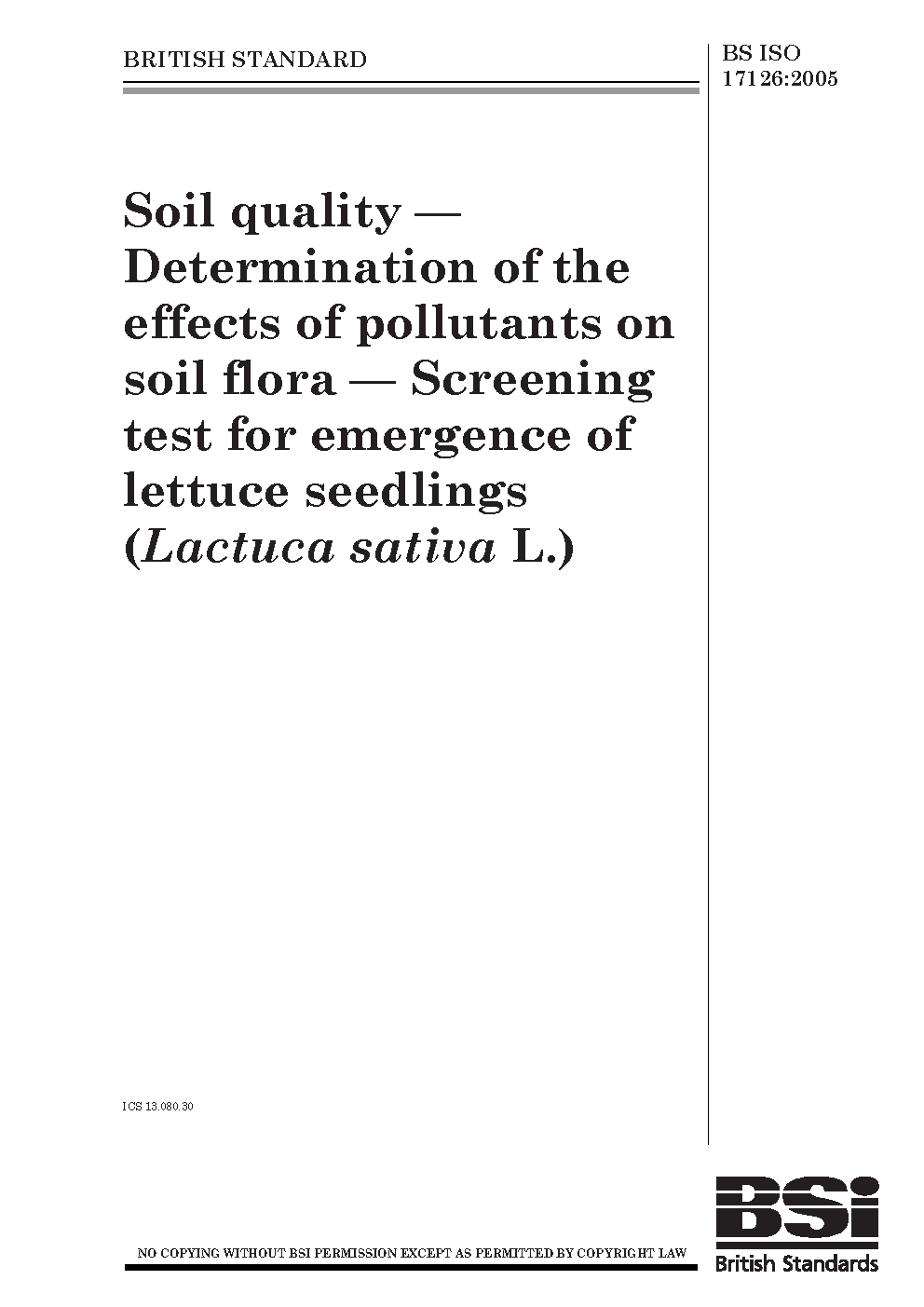 Soil quality. Determination of the effects of pollutants on soil flora. Screening test for emergence of lettuce seedlings (Lactuca sativa L.)
