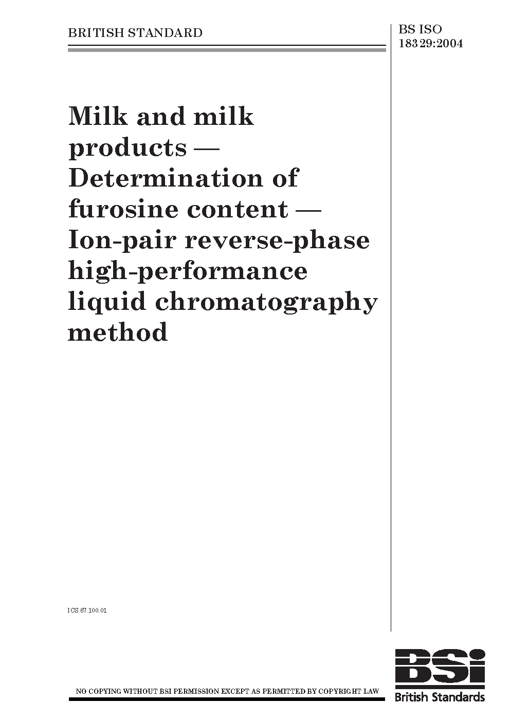 Milk and milk products. Determination of furosine content. Ion-pair reverse-phase high-performance liquid chromatography method