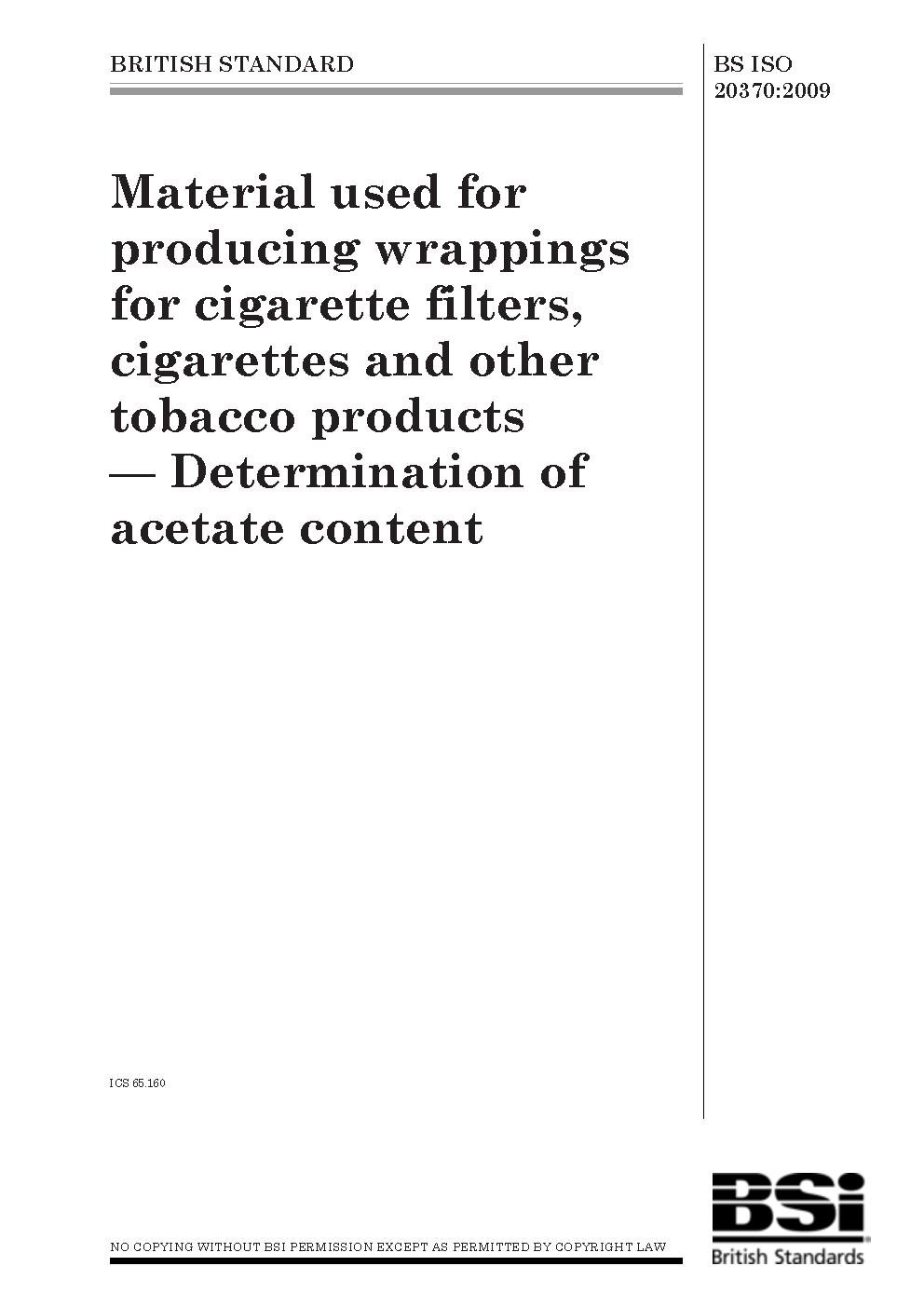 Acetates;Cigarettes;Tobacco;Determination of content;Wrapping;Chemical analysis and testing;Cigarette filters;Biochemical methods of analysis;Cigarette paper