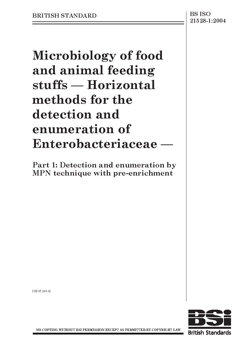 Microbiology of food and animal feeding stuffs. Horizontal methods for the detection enumeration Enterobacteriaceae Detection by MPN technique with pre-enrichment