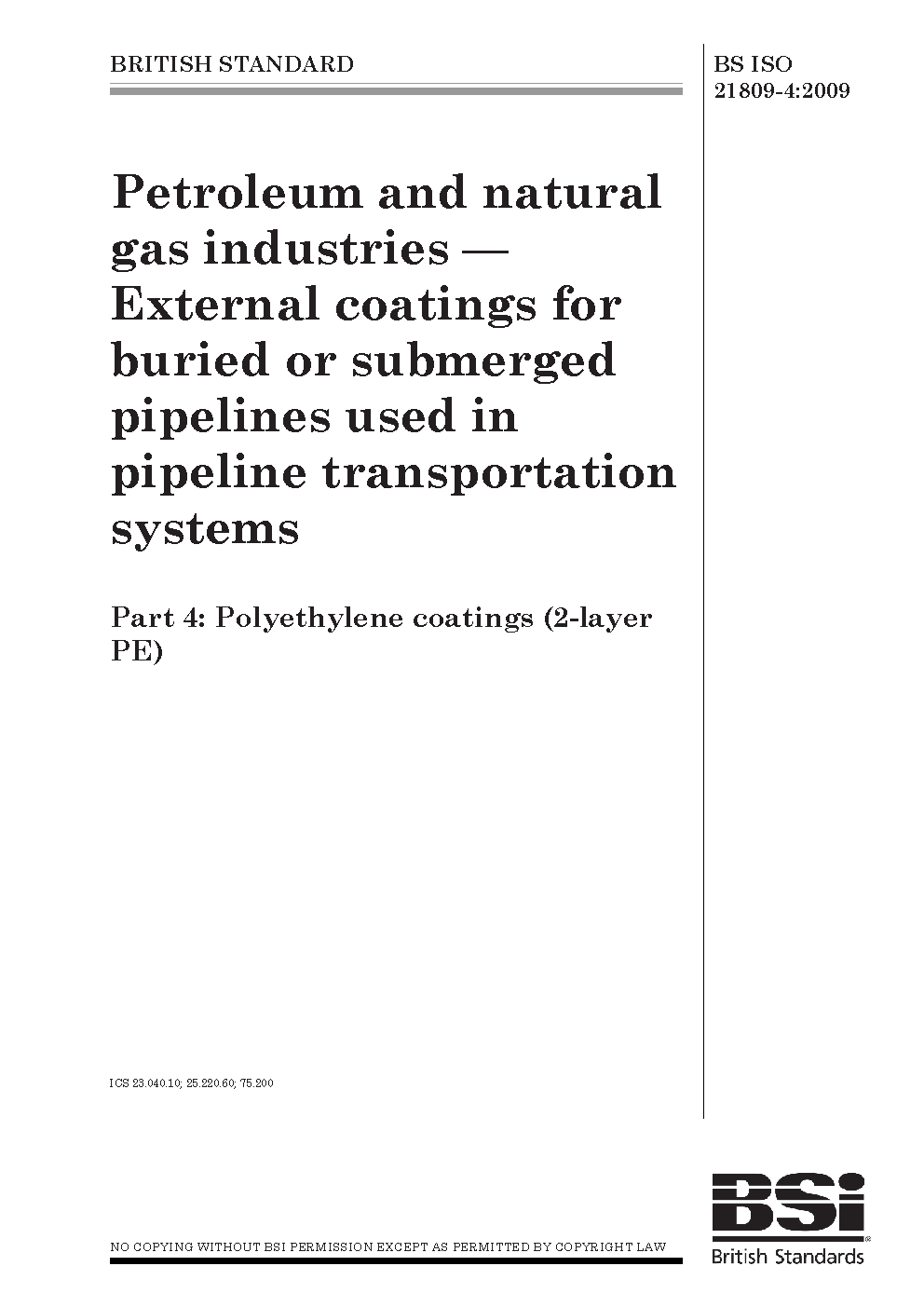 Petroleum and natural gas industries. External coatings for buried or submerged pipelines used in pipeline transportation systems Polyethylene (2-layer PE)