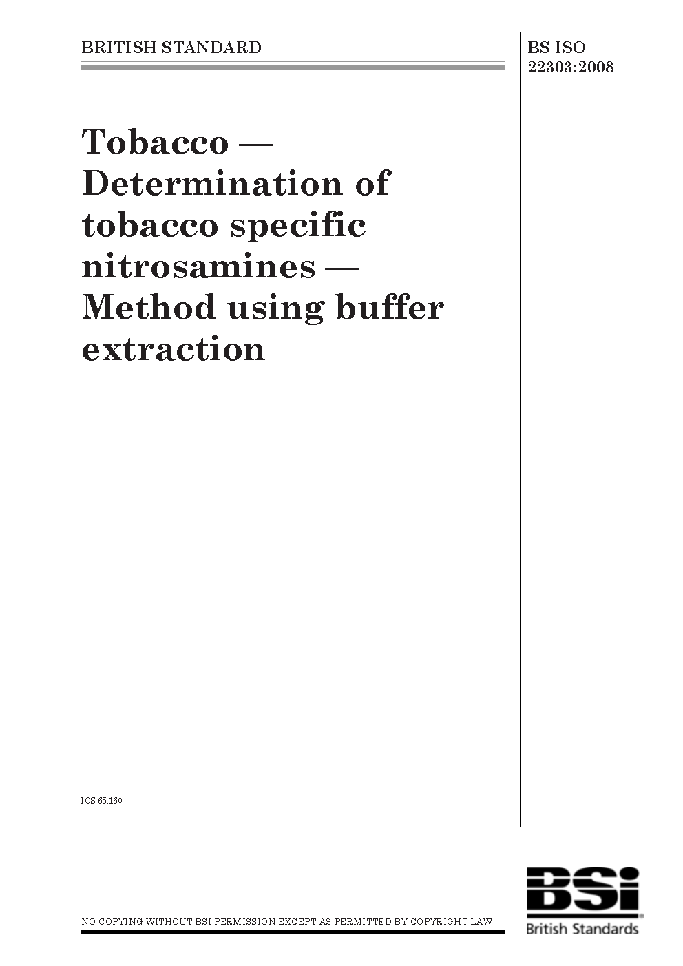 Tobacco. Determination of tobacco specific nitrosamines. Method using buffer extraction
