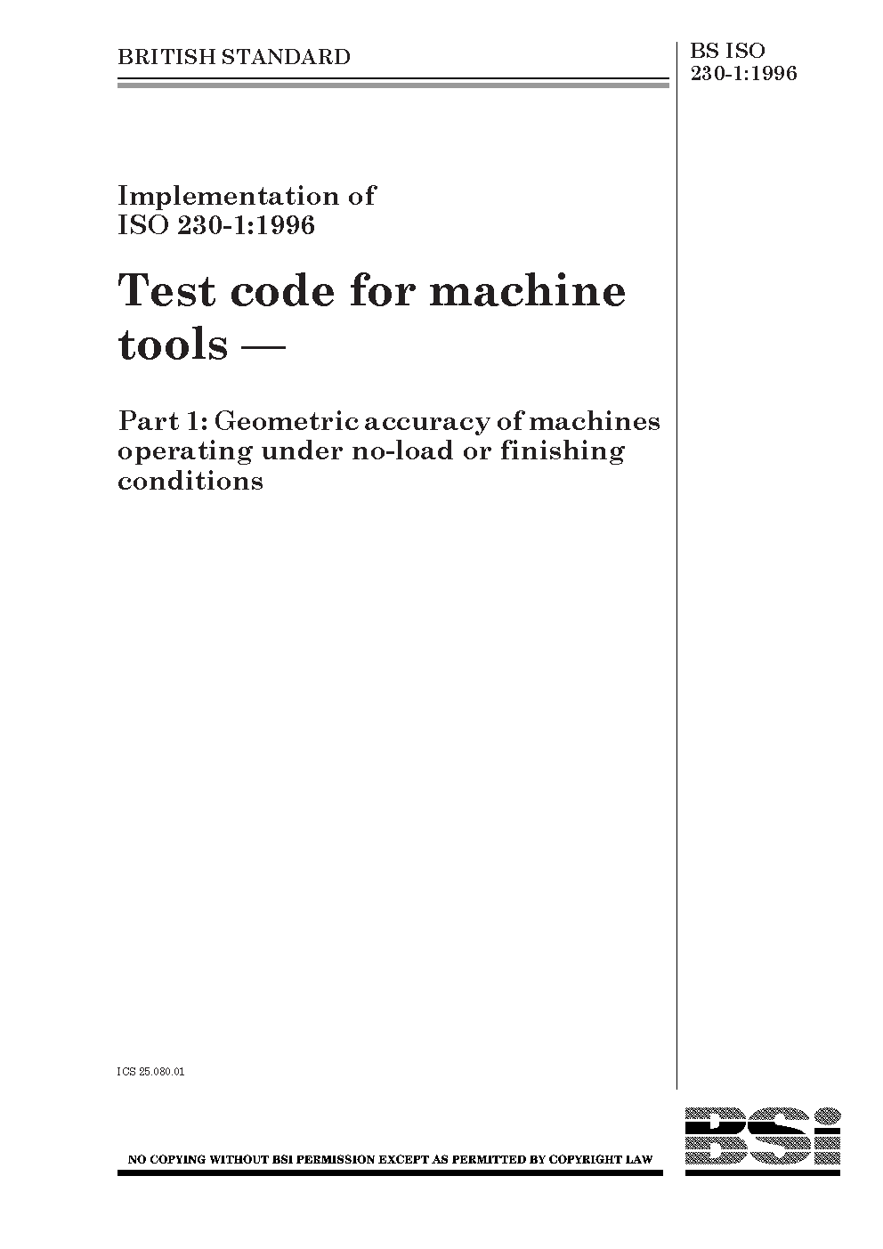Test code for machine tools Geometric accuracy of machines operating under no-load or finishing conditions