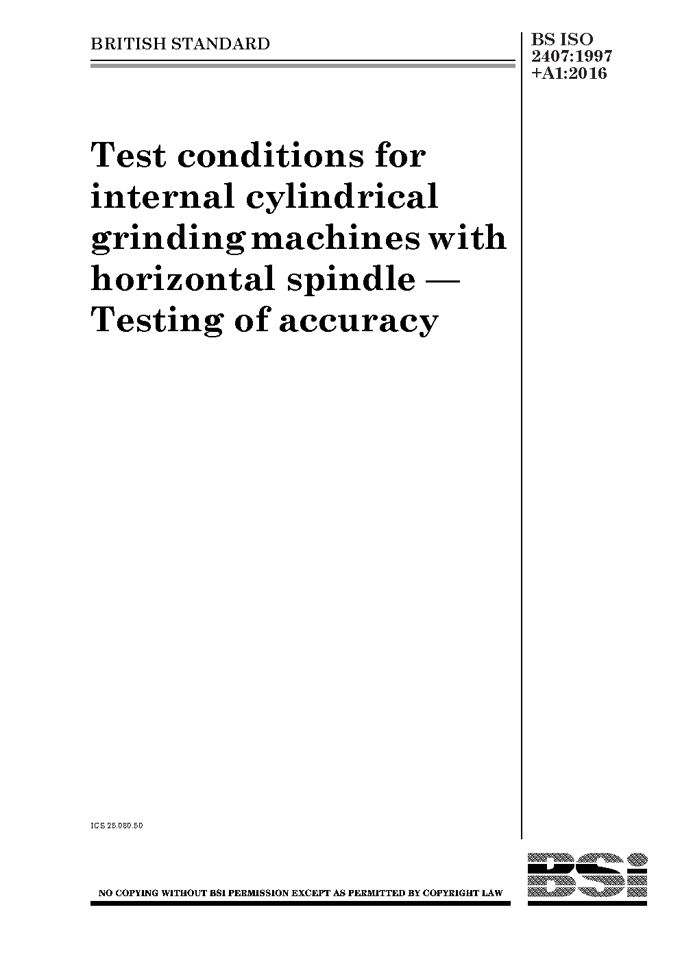 Test conditions for internal cylindrical grinding machines with horizontal spindle. Testing of accuracy