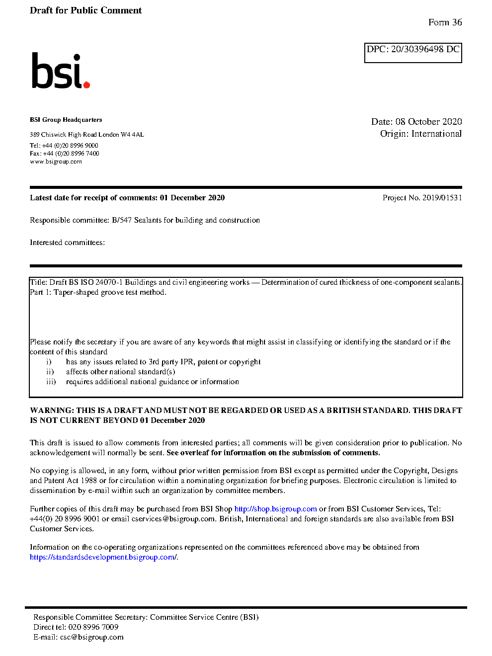 Building and civil engineering sealants. Determination of cured thickness one-component sealant Taper-shaped groove test method