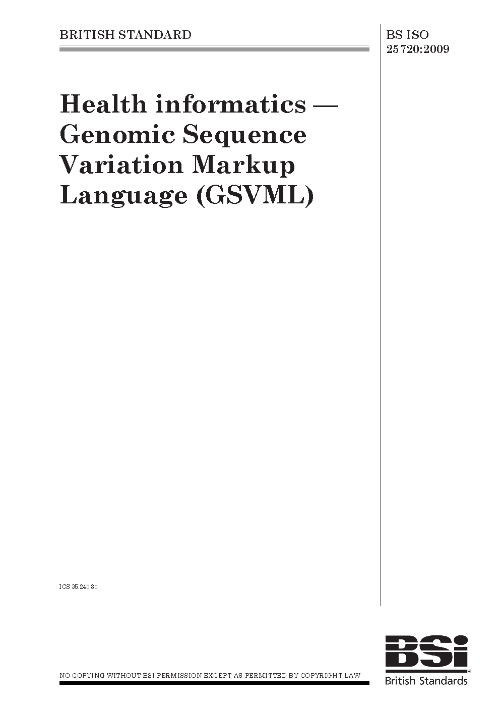 Health informatics. Genomic sequence variation markup language (GSVML)