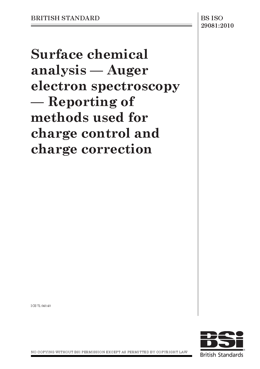 Surface chemical analysis. Auger electron spectroscopy. Reporting of methods used for charge control and charge correction