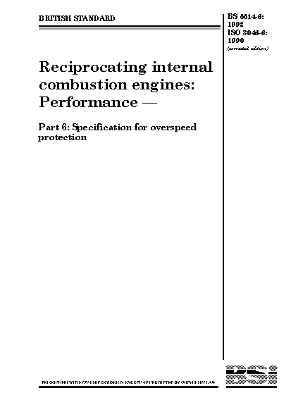 Reciprocating internal combustion engines. Performance Overspeed protection