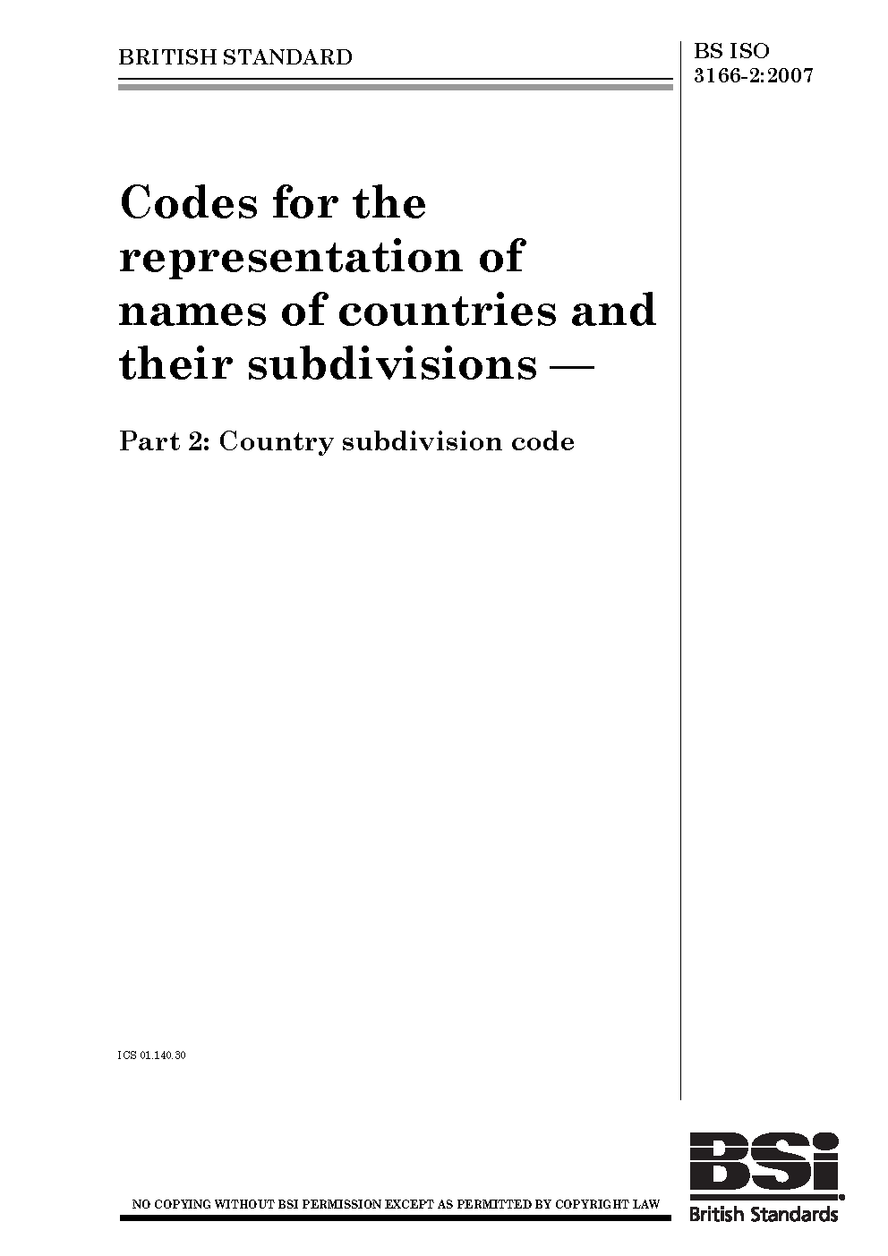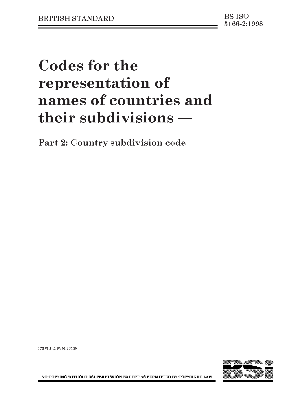 Codes for the representation of names countries and their subdivisions Country subdivision code
