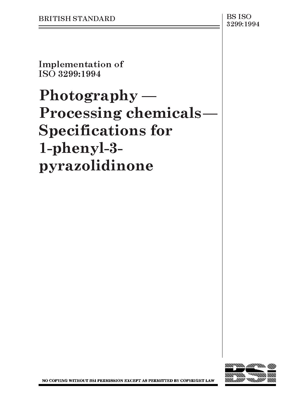 Photography. Processing chemicals. Specifications for 1-phenyl-3-pyrazolidinone