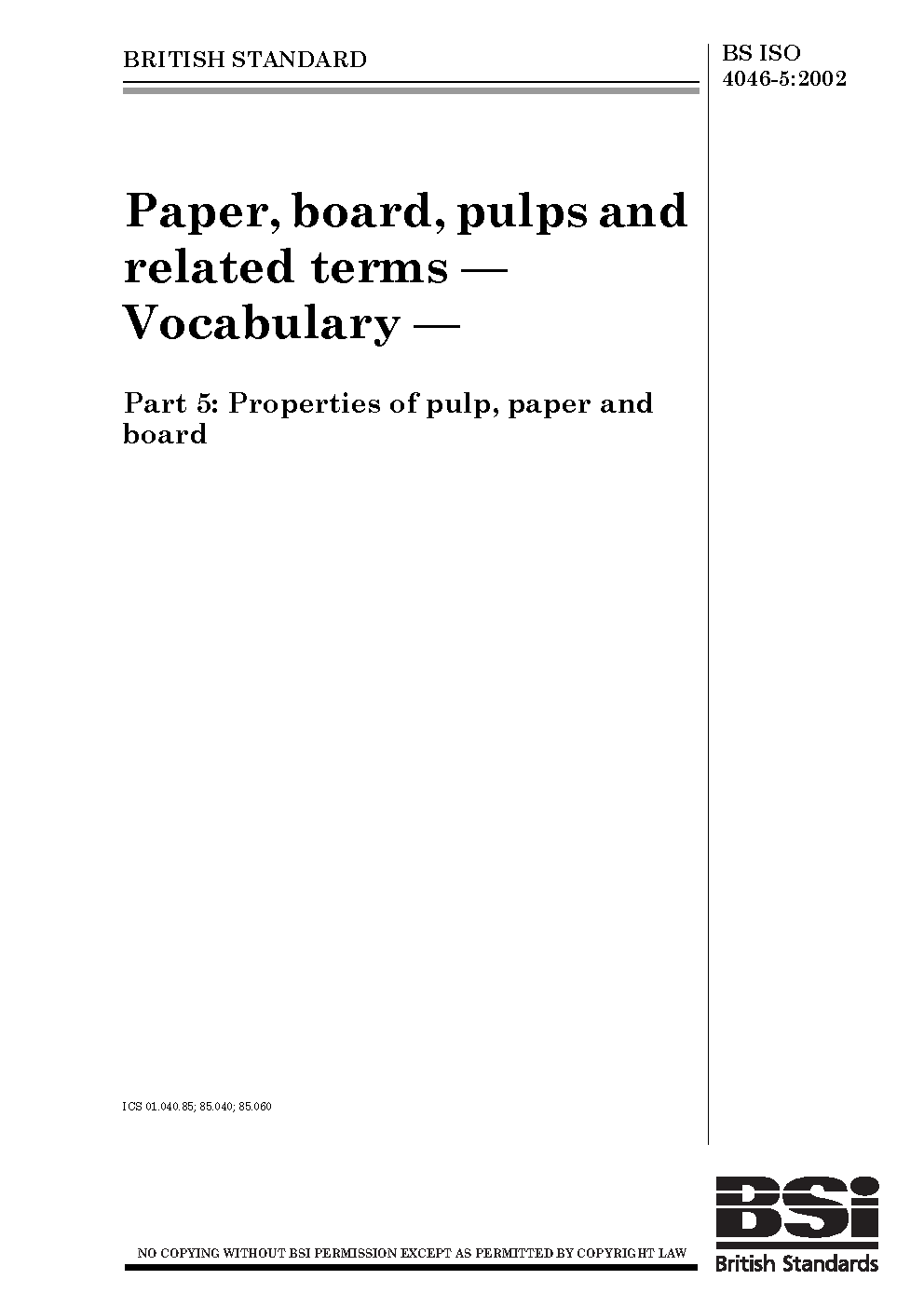 Paper, board, pulps and related terms. Vocabulary Properties of pulp, paper board