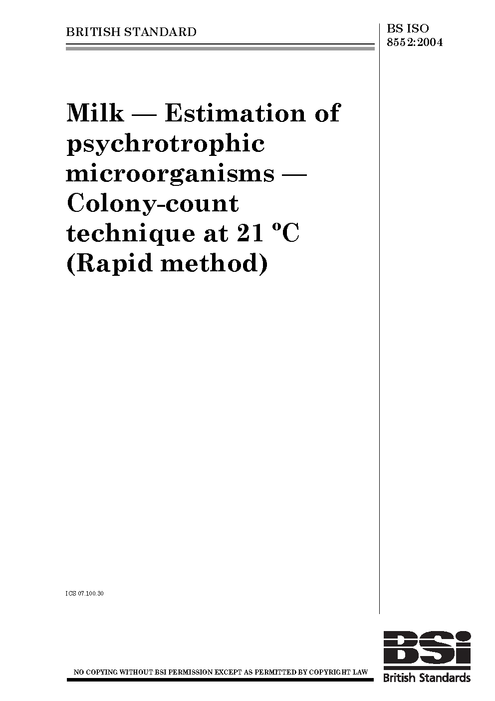 Milk. Estimation of psychrotrophic microorganisms. Colony-count technique at 21°C (rapid method)