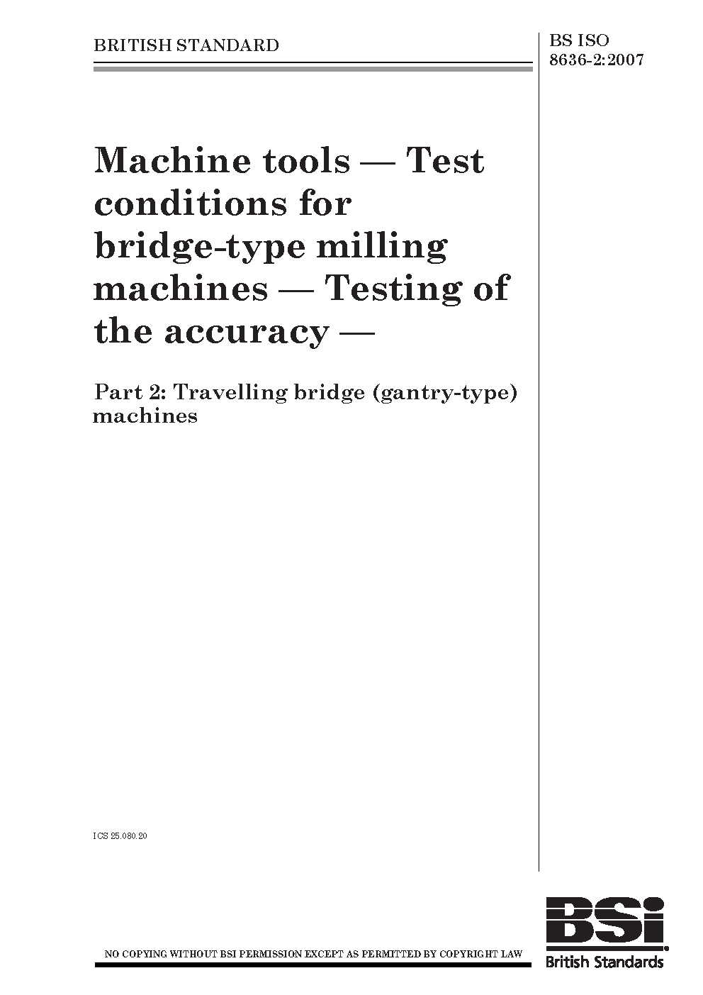 Machine tools. Test conditions for bridge-type milling machines. Testing of the accuracy Travelling bridge (gantry-type) machines