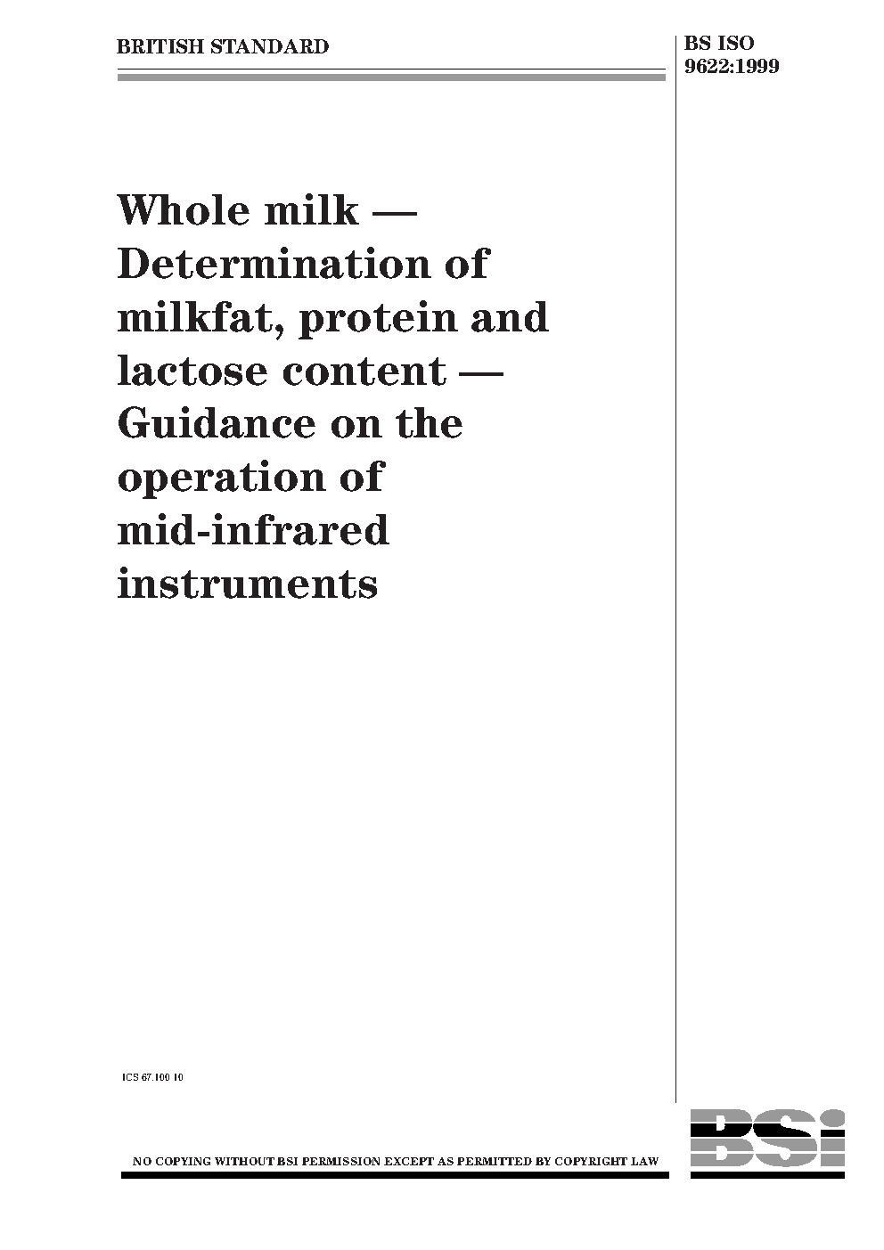 Determination of content;Weight (mass);Precision;Accuracy;Lactose;Calibration;Infrared radiation;Chemical analysis and testing;Fat content determination;Testing conditions;Linearity;Test equipment;Dairy products;Corrective action;Operating conditions;Milk;Volume;Sampling methods;Instructions for use;Stability;Infrared spectrophotometry;Reproducibility;Proteins;Composition;Homogeneity