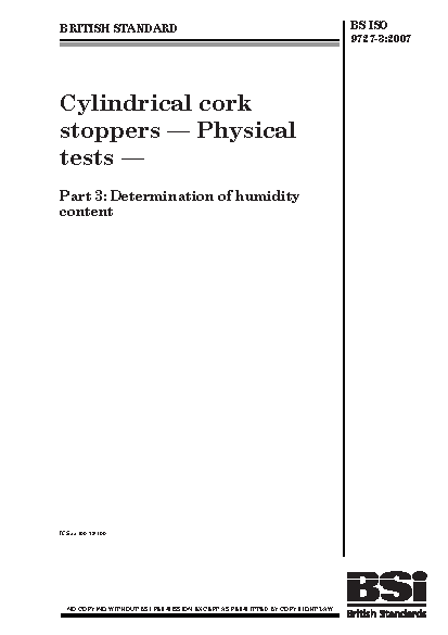 Physical testing;Moisture measurement;Humidity measurement;Cork;Stoppers;Cylindrical shape;Closures