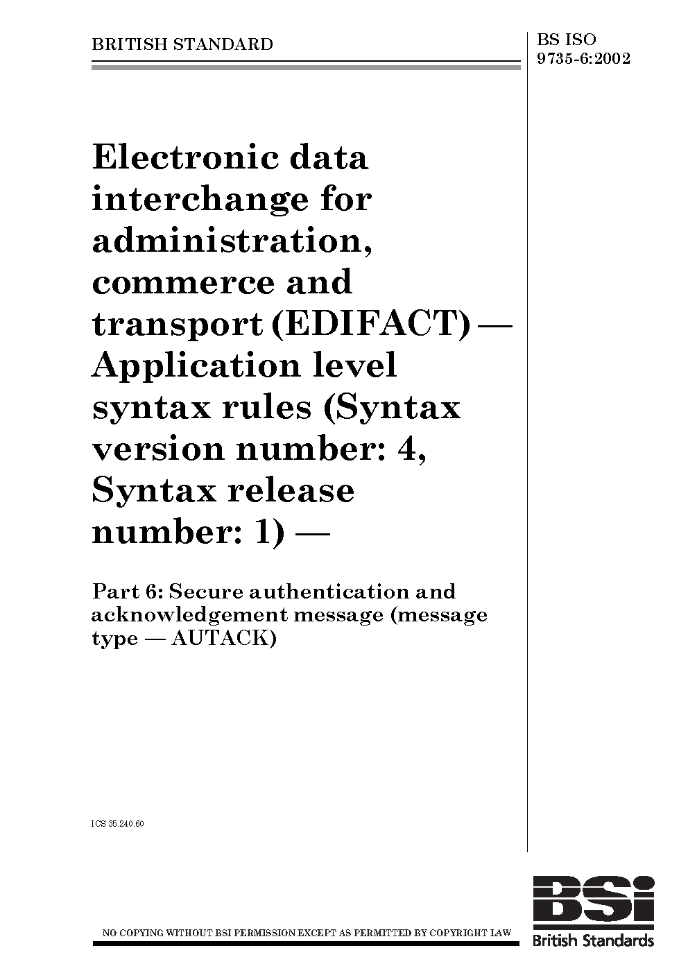 Electronic data interchange for administration, commerce and transport (EDIFACT). Application level syntax rules Secure authentication acknowledgement message (message type AUTACK)