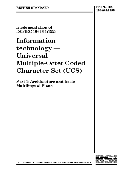 Information technology. Universal Multiple-Octet Coded Character Set (UCS) Architecture and Basic Multilingual Plane