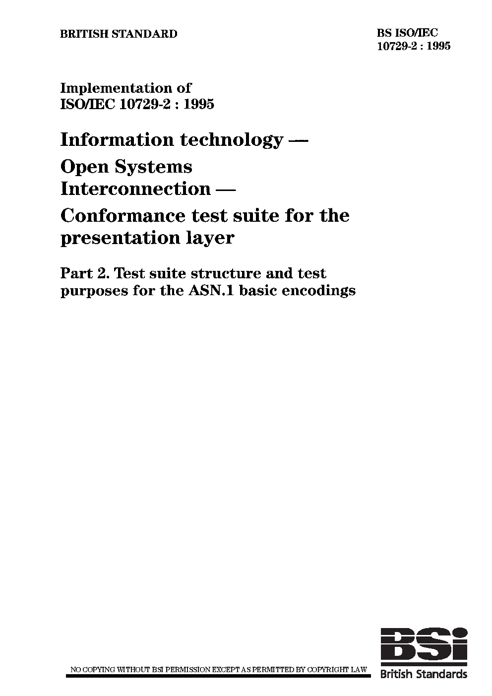 Information technology. Open Systems Interconnection. Conformance test suite for the presentation layer Test structure and purposes ASN.1 basic encodings