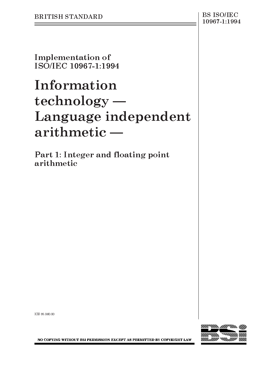Information technology. Language independent arithmetic Integer and floating point