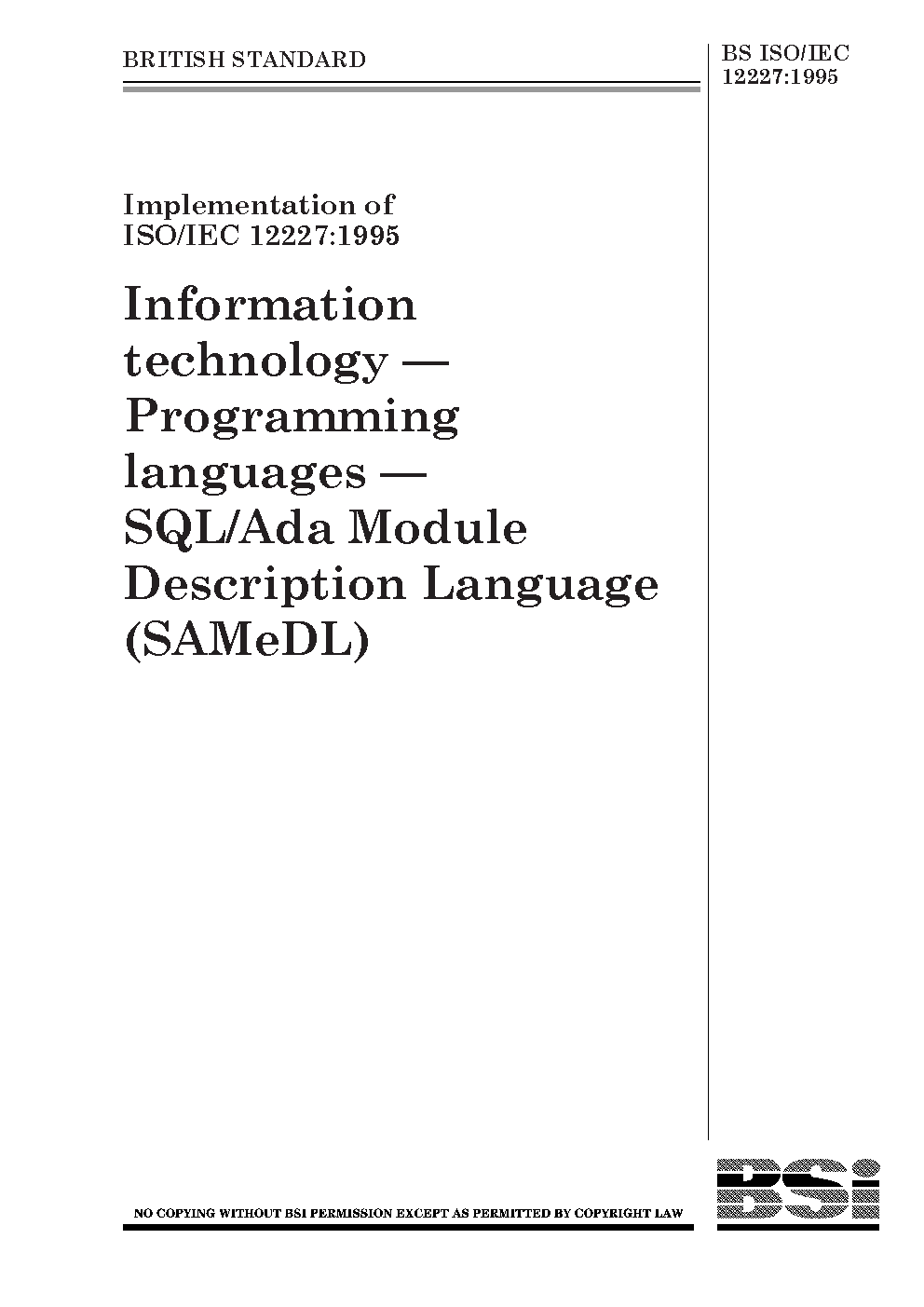 Information technology. Programming languages. SQL/Ada Module Description Language (SAMeDL)