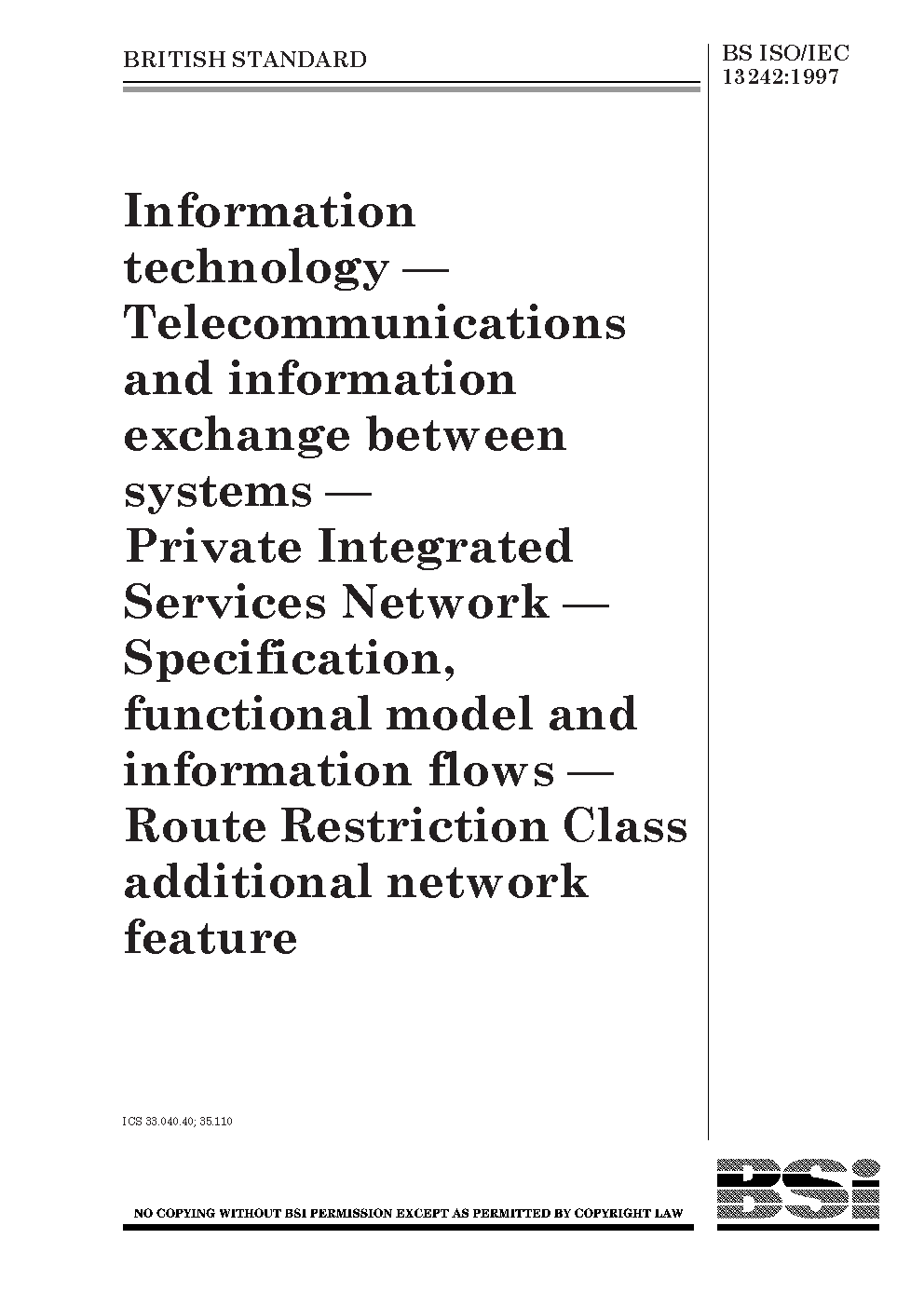 Information technology. Telecommunications and information exchange between systems. Private integrated services network. Specification, functional model and information flows. Route restriction class additional network feature