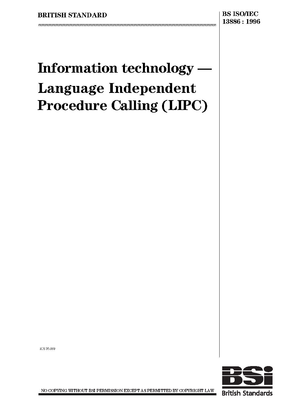 BS ISO/IEC 13886:1996
