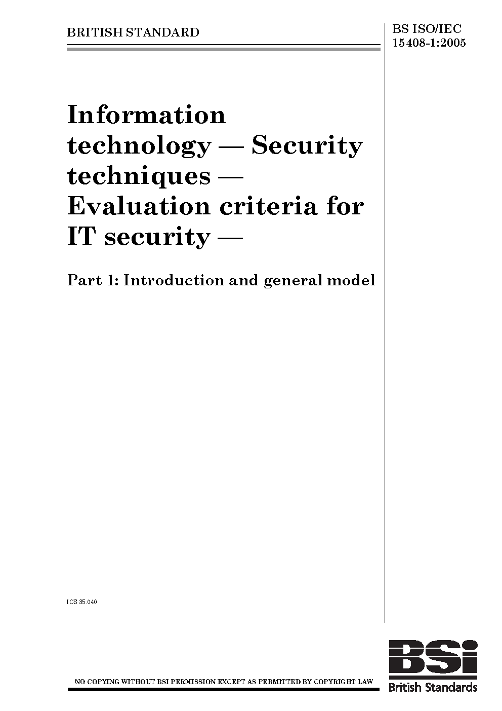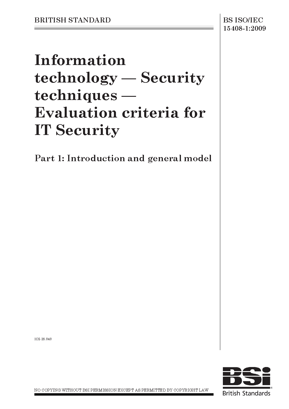 Information technology. Security techniques. Evaluation criteria for IT security Introduction and general model