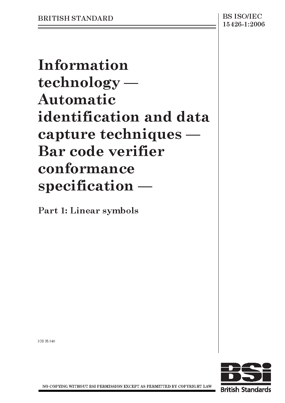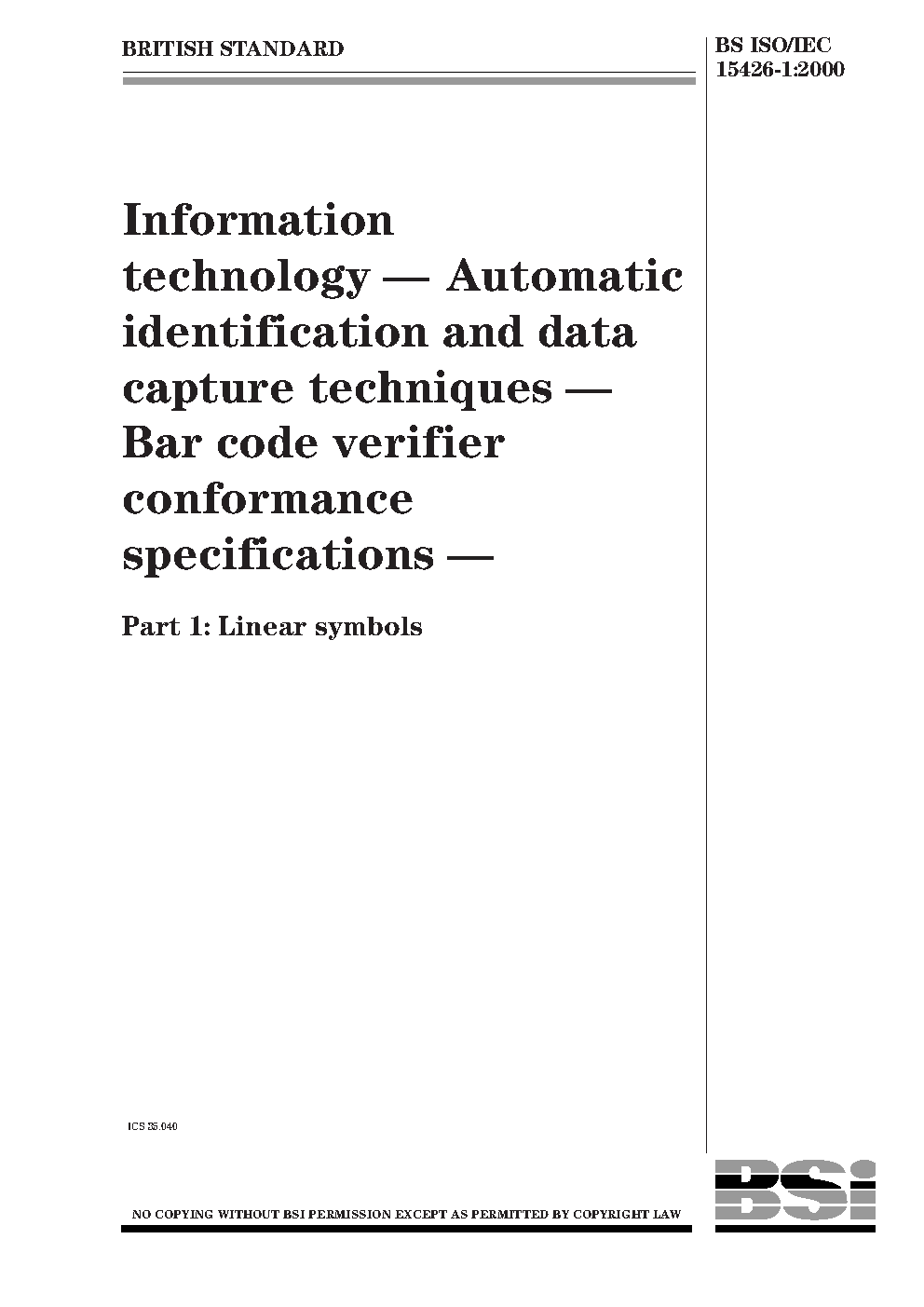 Information technology. Automatic identification and data capture techniques. Bar code verifier conformance specification Linear symbols