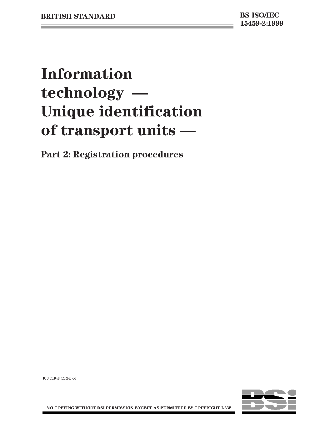 BS ISO/IEC 15459-2:1999