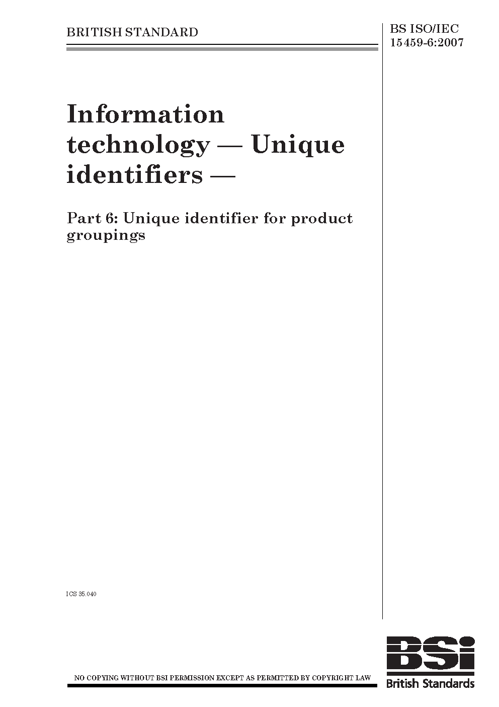 BS ISO/IEC 15459-6:2007