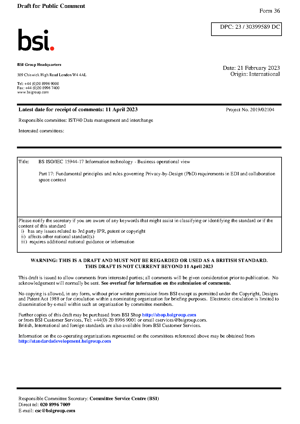 Information technology. Business operational view Fundamental principles and rules governing Privacy-by-Design (PbD) requirements in an EDI collaboration space context