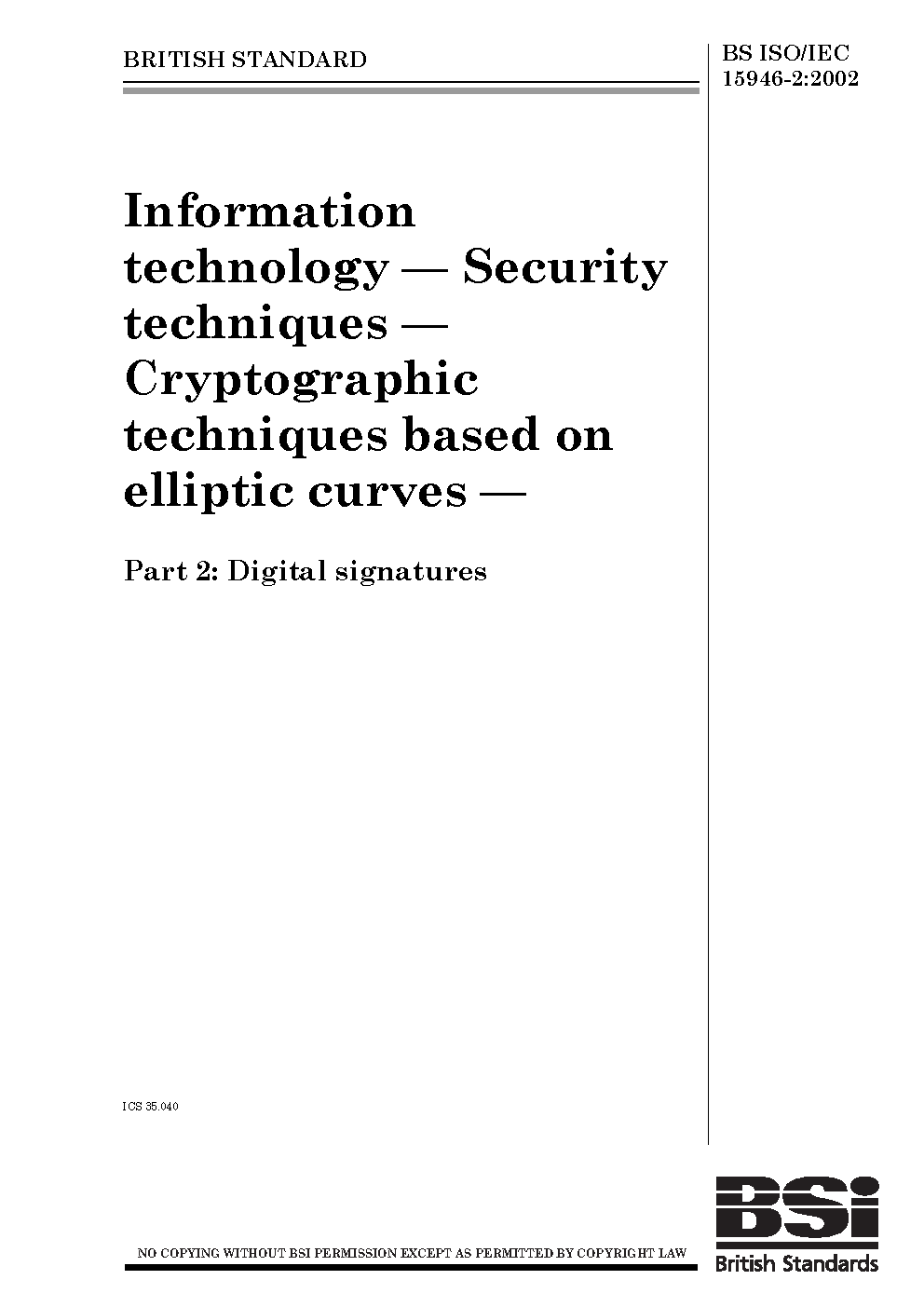 Information technology. Security techniques. Cryptographic techniques based on elliptic curves Digital signatures