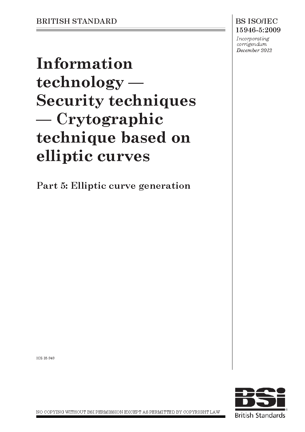 Information technology. Security techniques. Cryptographic techniques based on elliptic curves Elliptic curve generation