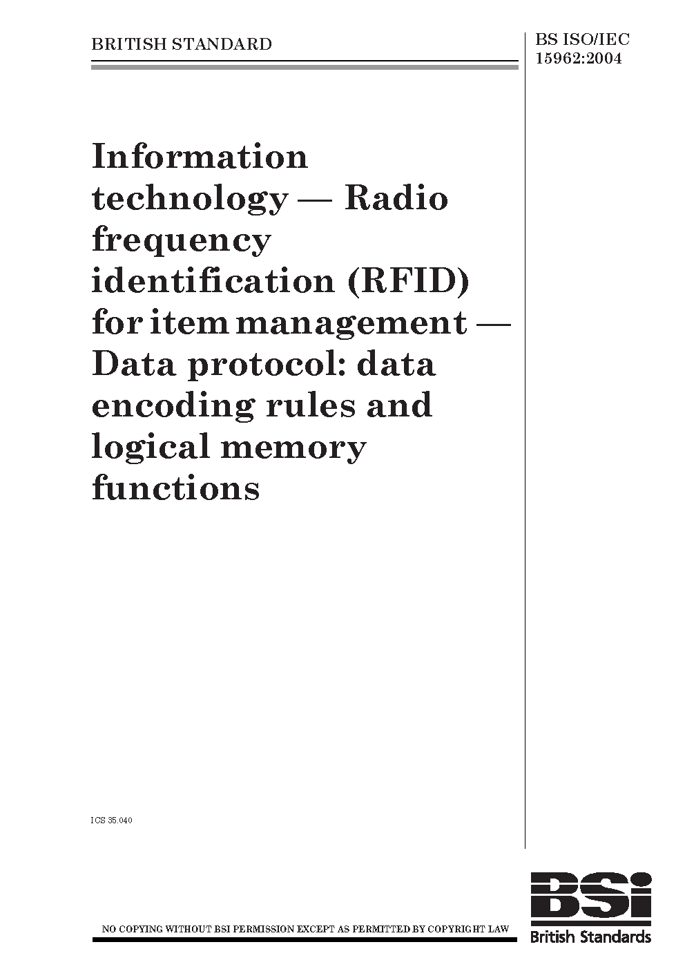 Information technology. Radio frequency identification (RFID) for item management. Data protocol. Data encoding rules and logical memory functions