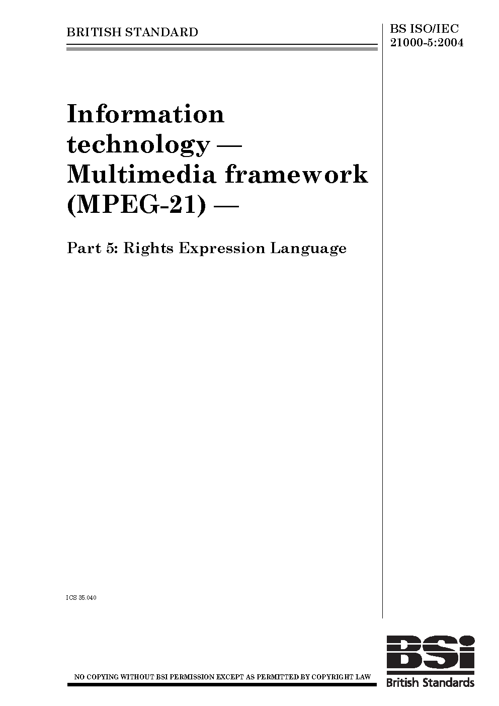 Information technology. Multimedia framework (MPEG-21) Rights Expression Language