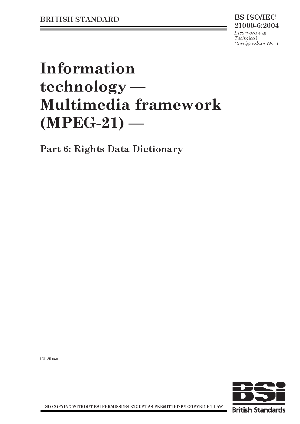 Information technology. Multimedia framework (MPEG-21) Rights data dictionary
