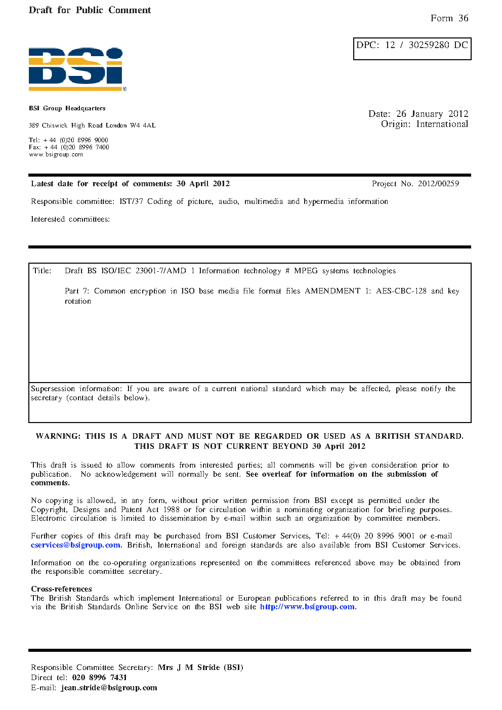 Information technology. MPEG systems technologies Common encryption in ISO base media file format files