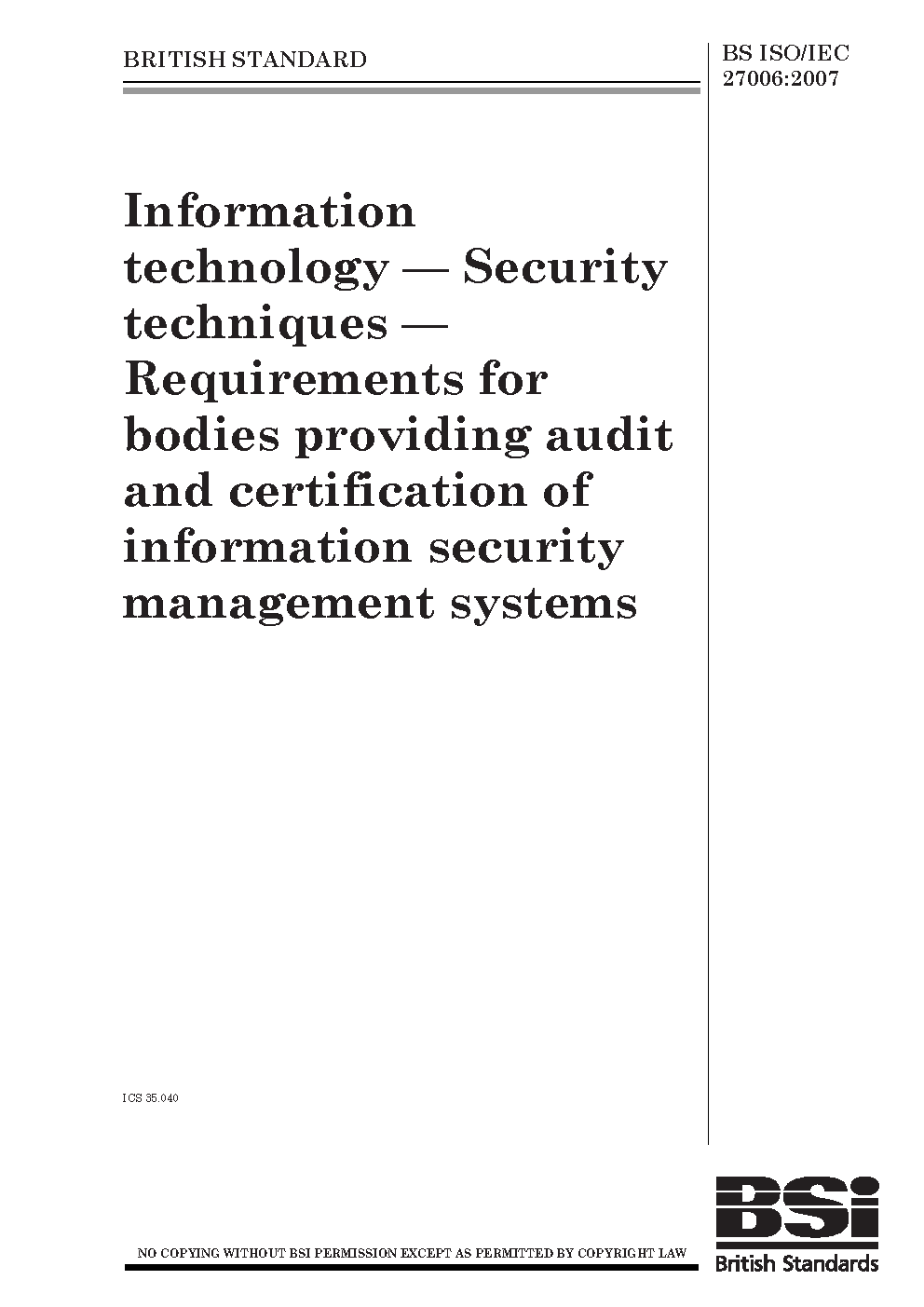 BS ISO/IEC 27006:2011