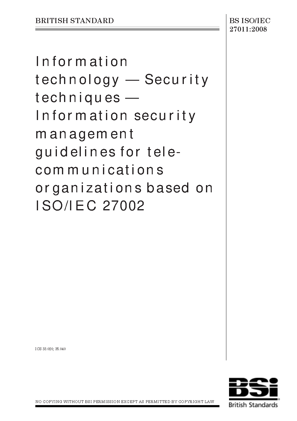 BS ISO/IEC 27011:2016