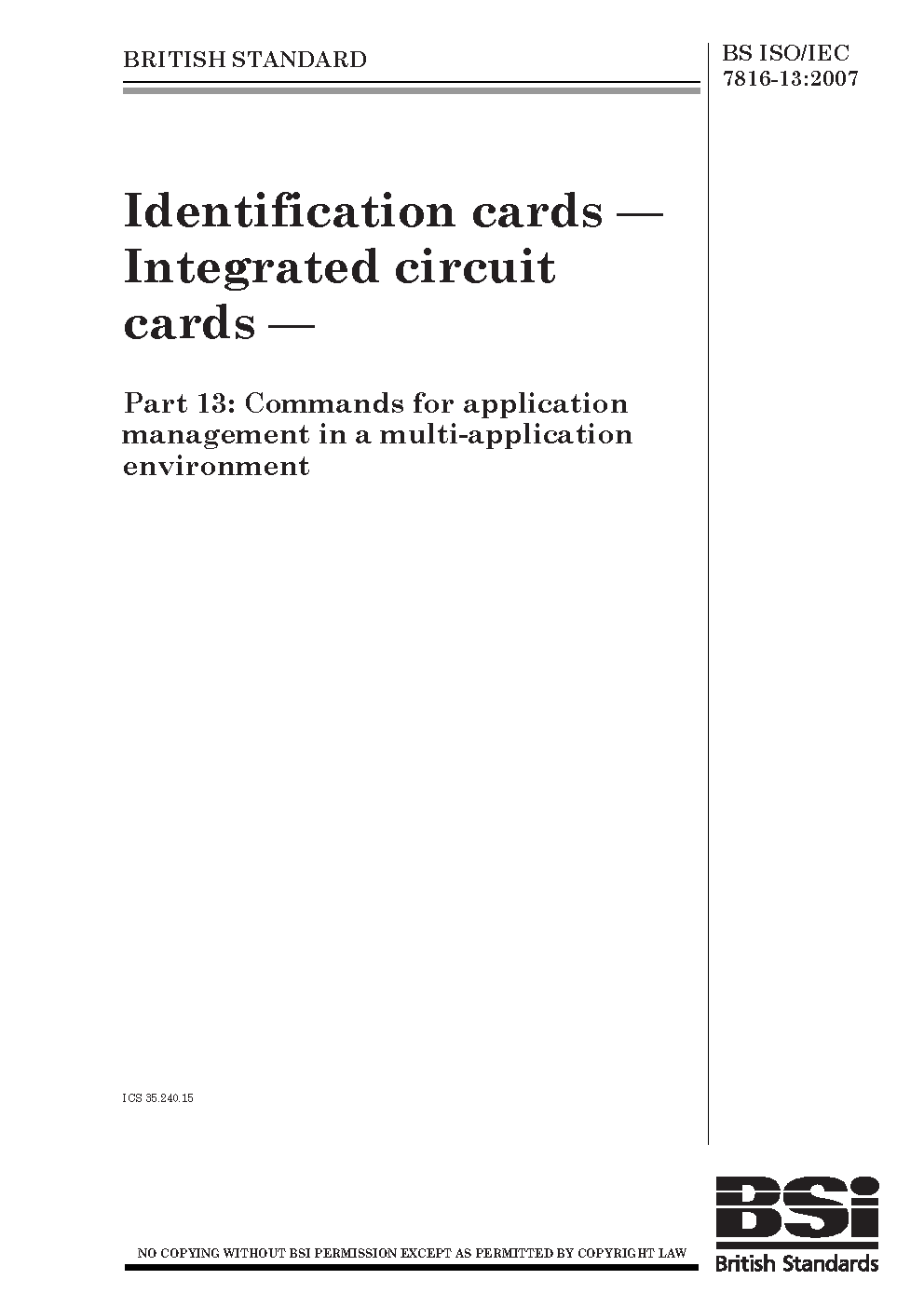 BS ISO/IEC 7816-13:2007