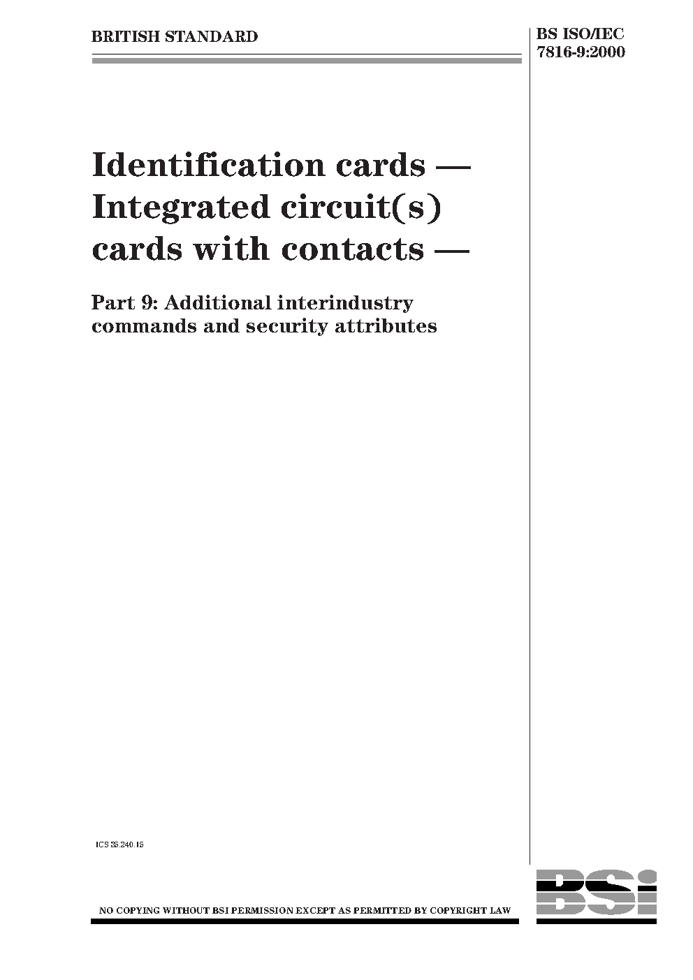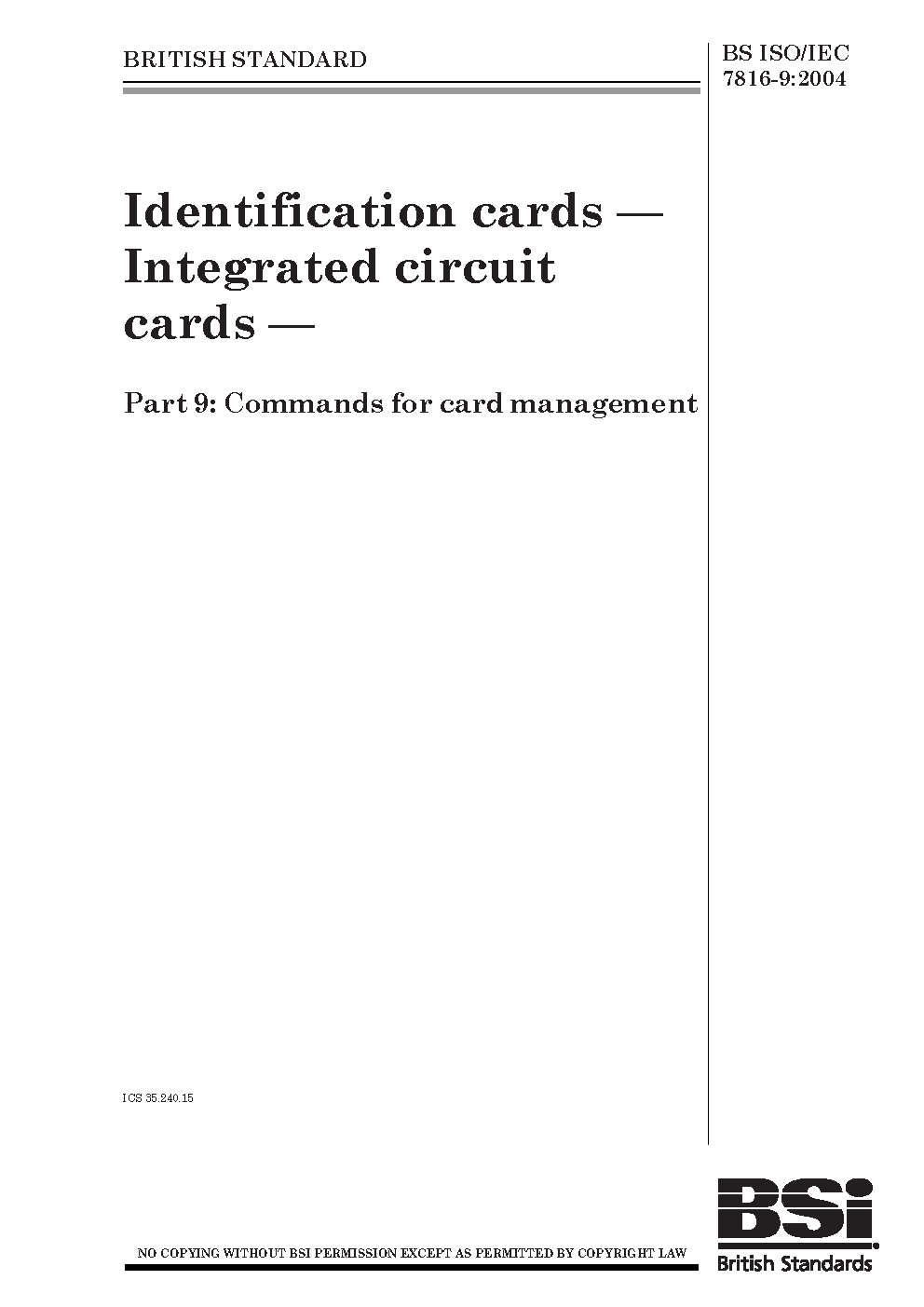 BS ISO/IEC 7816-9:2017