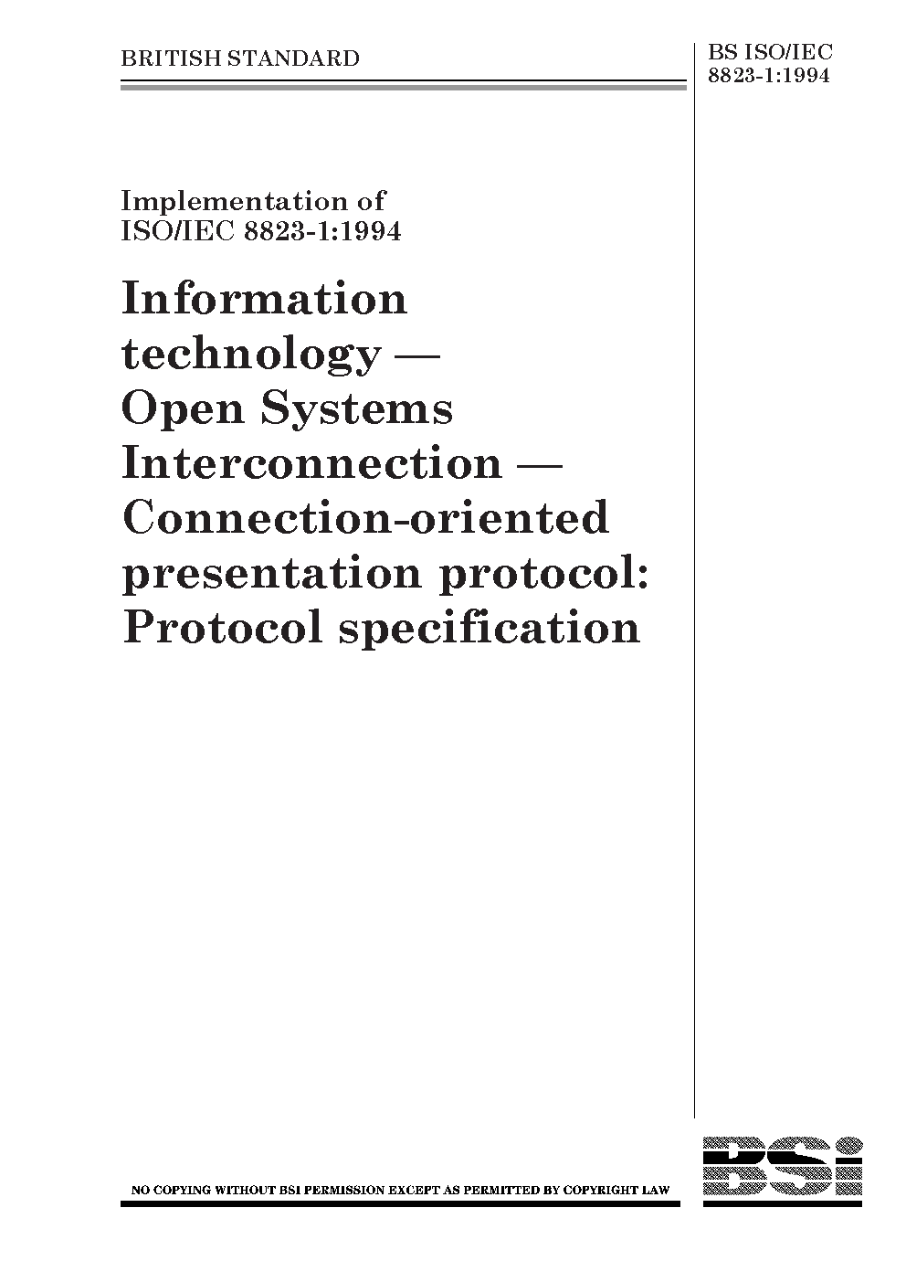 Information technology. Open systems interconnection. Connection- orientated presentation protocol Connection-oriented protocol. Protocol specification