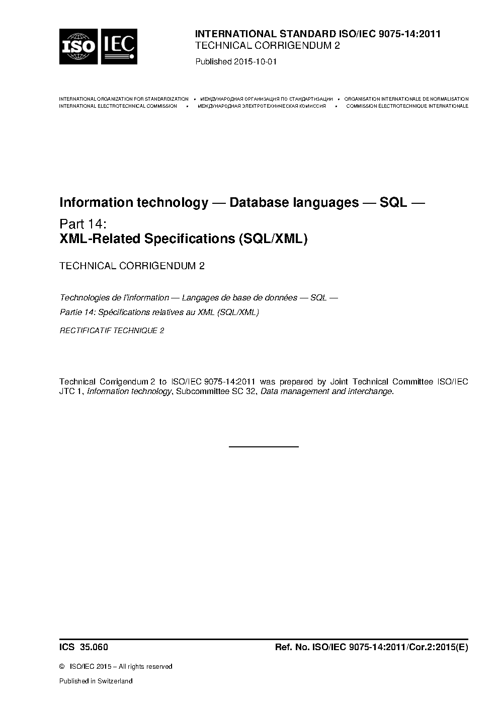 Information technology. Database languages. SQL