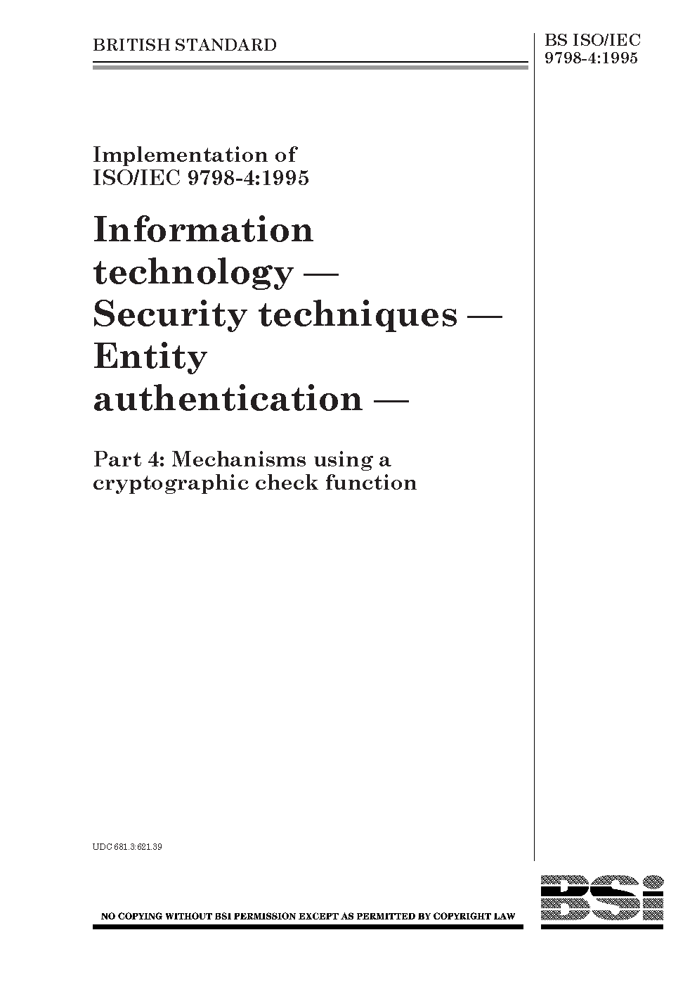 BS ISO/IEC 9798-4:1995