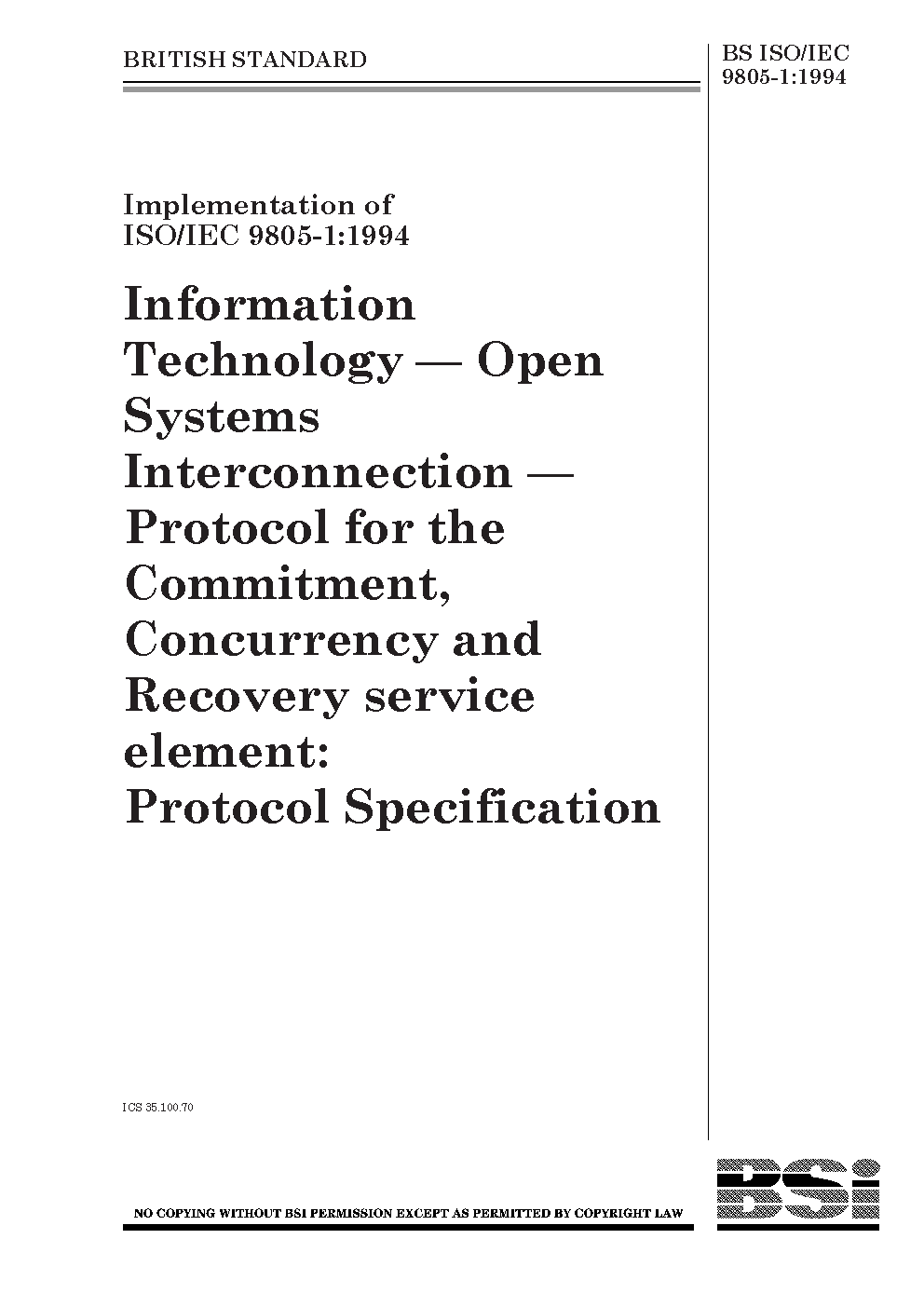 Information technology. Open systems interconnection. Protocol for the commitment, concurrency and recovery service element specification