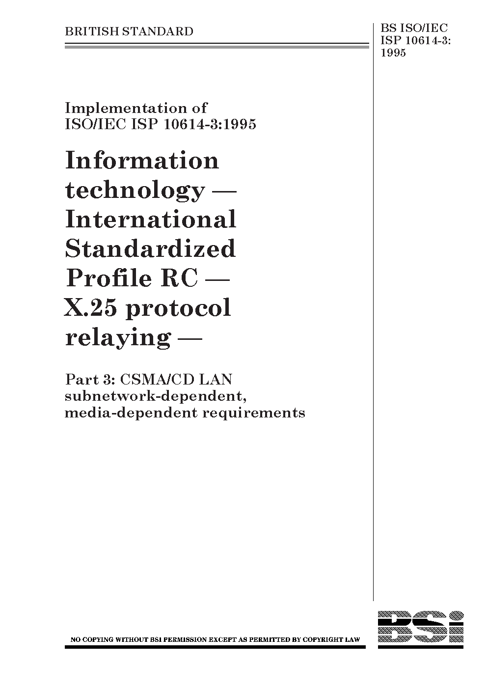 Information technology. International standardized profile RC. X.25 protocol relaying CSMA/CD LAN subnetwork-dependant, media-dependant requirements